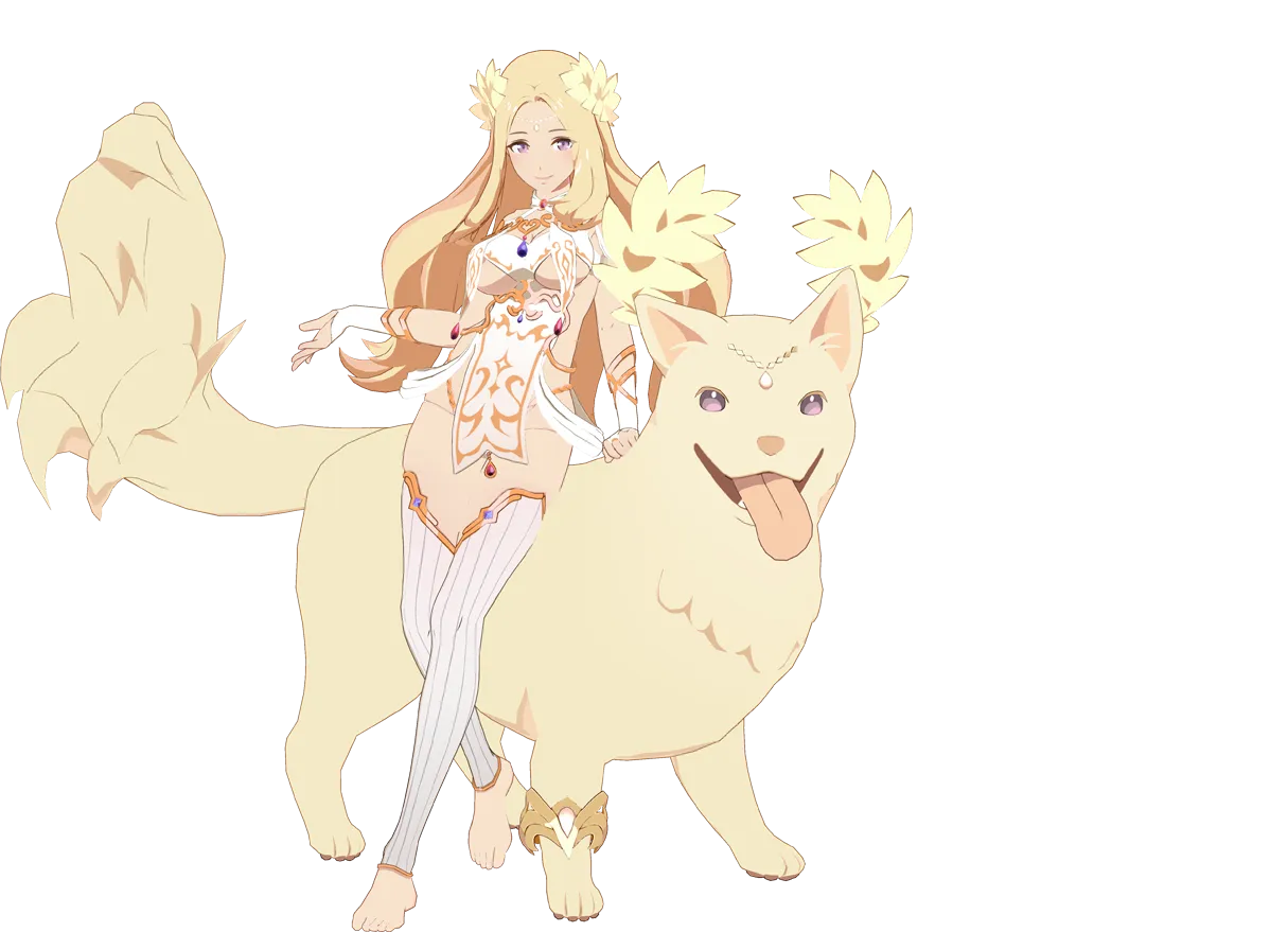 公式サイト毎度おなじみ、記憶の女神とその従者。満を持してプレイアブルと化したため、主従揃ってはしゃいでいる様子が見られる。戦闘ではイヌエルが女神を乗せて疾走するスタイル。重そうと思ってはいけない。