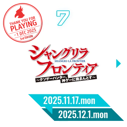 人気アニメ「シャングリラ・フロンティア」とキャラクターたちが登場!