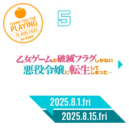 「2ndシーズン」登場作品公開!8月1日(金)に「乙女ゲームの破滅フラグしかない悪役令嬢に転生してしまった…」が、8月15日(金)に「ありふれた職業で世界最強」が登場!