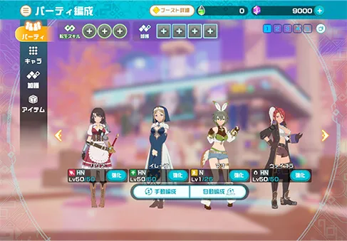 じっくり堪能!仲間として集めたキャラクター達で夢のパーティを組み、旅やダンジョンに出発!キャラクター達のかっこいいバトルシーンを楽しもう!お気に入りの場面はスクショを撮ることも…!